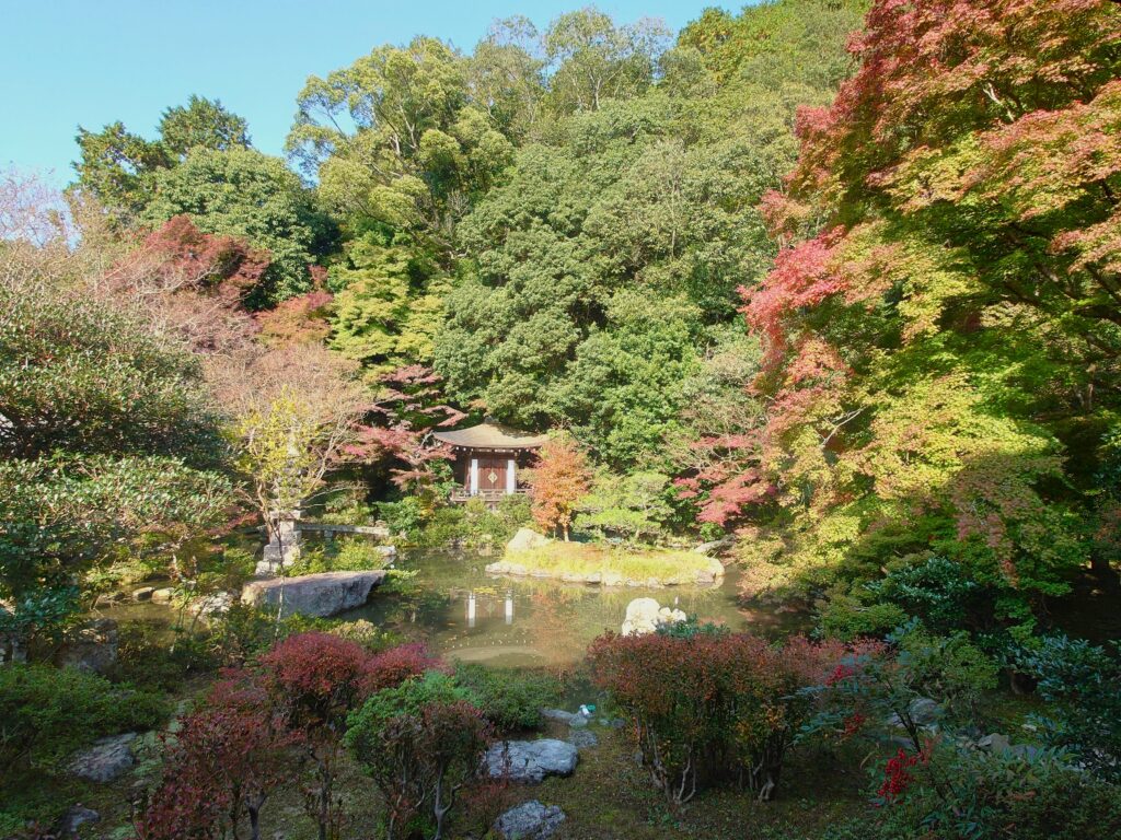 霊殿と宸殿をつなぐ側面のモミジはかなり色づき進みました。